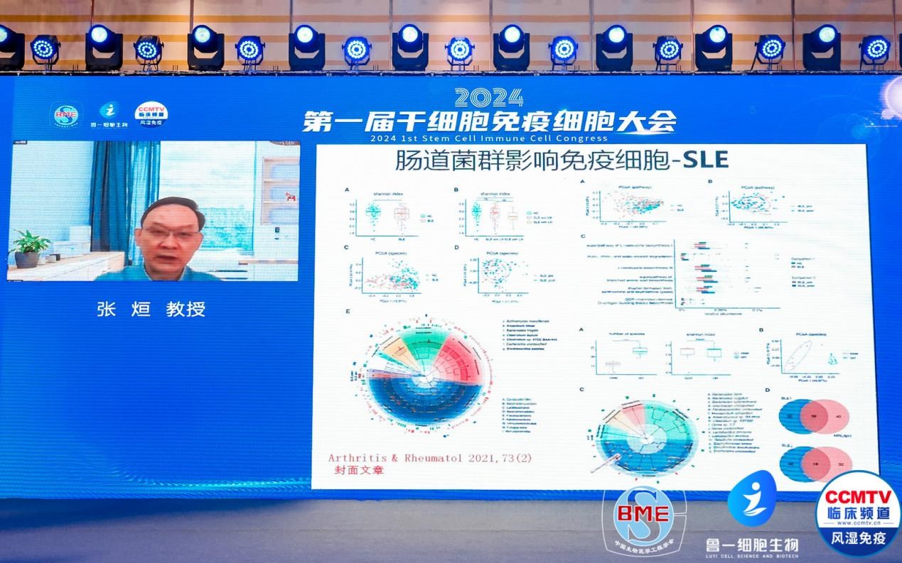 多位国内外知名专家教授分别就干细胞与免疫细胞的最新研究成果、发展趋势以及在疾病治疗、再生医学、市场投产及应用等领域进行了深入的交流和探讨。首先演讲的是上海交通大学讲席教授、细胞和基因治疗研究院院长、创新免疫治疗全国重点实验室教授、PI、原美国俄亥俄州立大学雷诺德.韦斯勒终身讲席教授郑颂国教授,他分享的主题是:牙龈干细胞及其外泌体在RA治疗中的研究报告。