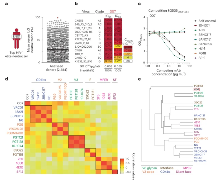 鉴定出具有独特结合与中和活性的广泛中和抗体007