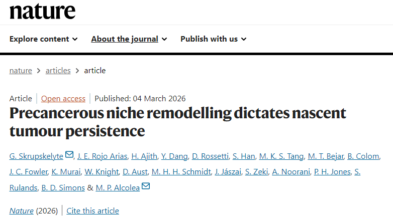 Skrupskelyte, G., Rojo Arias, J.E., Ajith, H. et al. Precancerous niche remodelling dictates nascent tumour persistence. Nature (2026). doi:10.1038/s41586-026-10157-8